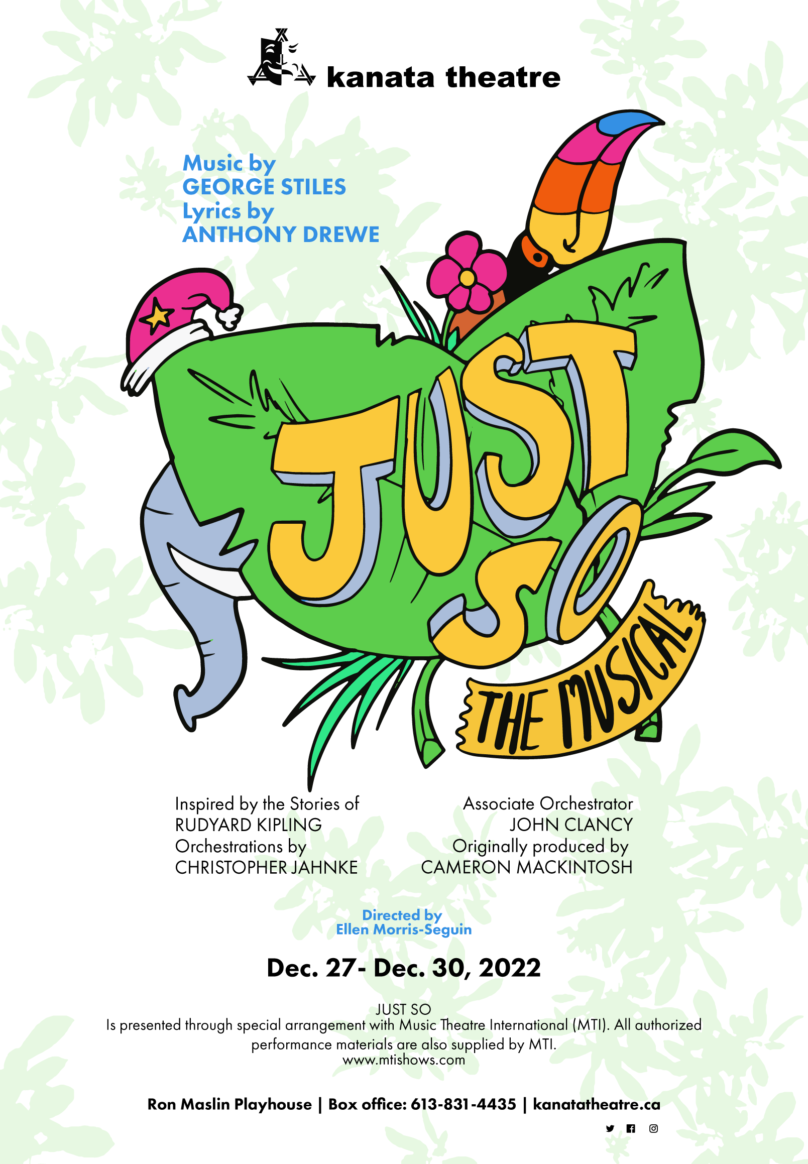 “Just So” is a fantastical musical based on a series of short stories by Rudyard Kipling. Join us on a musical journey with the Elephant Child and the Kolokolo Bird guided by the whimsical Eldest Magician. We encounter a series of animals as they begin to evolve into the forms we know today as our adventurer’s travel across the world in search of a mysterious foe.