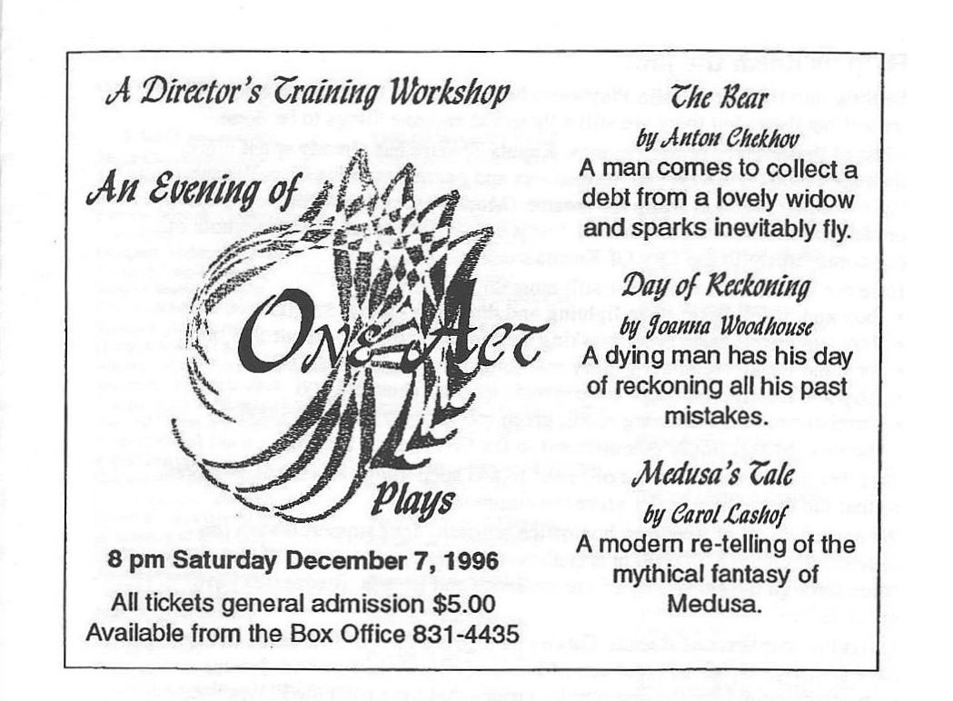 December 7, 1996 at Ron Maslin Playhouse as part of Season #28 1996-1997